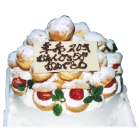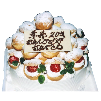 生クリーム7号サイズ(直径21cm)の上にプチシュークリームを豪華に乗せたケーキ